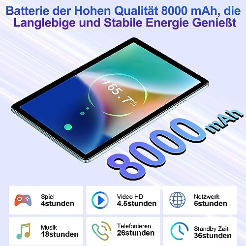 【8000 mAh & HD DISPLAY & Bluetooth 5.0】 Tablet 10 Verzinsung haben einen eingebauten 8000 mAh Speicherzelle. Nachdem das Tablet ohne Lücke aufgeladen ist, kann die Akkulaufzeit 6-8 Stunden erreichen (Büro, Lernen und Unterhaltung können gemischt werden). Unterstützt Bluetooth 5.0 Dateiübertragung. Das Tablet verwendet ein hochauflösendes 2,5-D-IPS-Display mit einer Förderung von 1280 × 800. Die HD-Kamera mit 5 MP vorne und 8 MP heckwärts macht es einfach, wundervolle Momente festzuhalten.