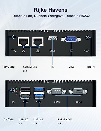【Mini PC Dual Nic Dual Display Dual Seriell Anschluss】Zwei Netzwerkports sorgen dafür, dass der mini desktop PC gleichzeitig auf verschiedene Extranets zugreifen und ihn zu einem leistungsstarken Router kreieren kann. Ausgestattet mit Intel UHD Graphics 600 und Unterstützung von 4K HD + 1080P VGA. Mit 2 x RS232 DB 9-poligen COM-Anschlüssen