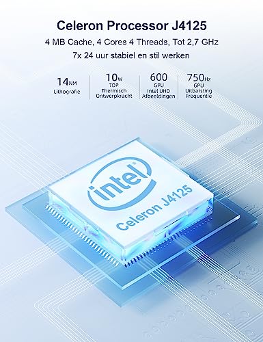 【Windows 11 Pro Mini PC Celeron J4125】 Windows 11 Pro ist vorinstalliert und unterstützt AES NI und Option Open Source Systeme qua Windows 10 und Linux. Celeron J4125 Prozessor, 4 Kerne 4 Threads, Prozessorbasisfrequenz 2,0 GHz, Burstfrequenz 2,7 GHz.