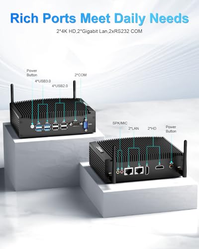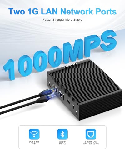 [Lüfterloser Mini PC unterstützt VESA Halterung] –> Dieser Mini Computer wiegt nichtsdestotrotz 1,1 kg (2,4 lb), hat eine Größe von 17,0 x 12,6 x 5,8 cm (6,7 x 5,0 x 2,3 Abgabe) und unterstützt die VESA Halterung. Bringt Ihnen mehr Platz auf dem Schreibtisch und eine schon aufgeräumte und ruhige Arbeitsumgebung. Der lüfterlose Mini PC bietet Ihnen eine 100 % reibungslose und stabile Arbeitsumgebung.
