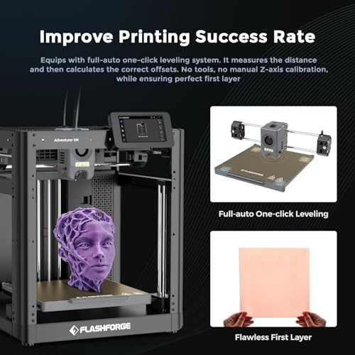【Leistungsstark und einfach】Drucken Sie direkt aus der Box innerhalb von 10mins. Adventurer 5M verfügt über ein-Klick automatische Nivellierung ohne Operation oder Aufmerksamkeit und gewährleistet jedes Mal perfekte Drucke ohne den Aufwand. FLASHFORGE 5M integriert Schlüsselfunktionen, wie Dual-Fan Düsen, Filamenterkennung, Wiederaufnahme des Drucks und Vibrationskompensation Funktion, um ein effizientes, bequemes und erfolgreiches Druckerlebnis zu gewährleisten