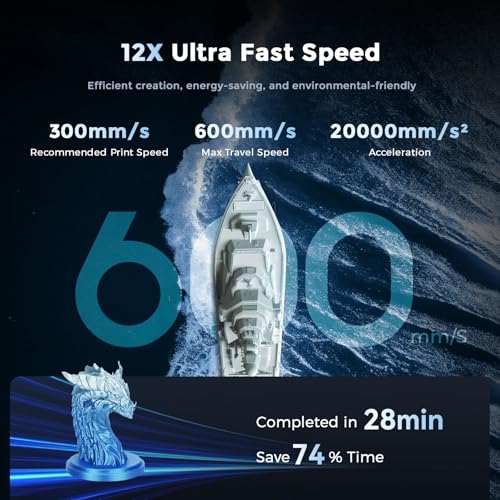 【32mm³/s Heißes Ende mit großem Durchfluss】Max 280°C Direktextruder, Heizung auf 200°C nur in 35s, um sicherzustellen, dass das Filament während des Hochgeschwindigkeits- und Hochtemperaturdrucks vollständig geschmolzen wird.5M 3D Prtinter kann verschiedene Filamente wie PLA/ABS/PETG/TPU/PLA-CF/PETG-CF (PC/ASA benötigt geschlossenes Gehäuse).3s Schnellabnehmdüsen (0.25/0.4/0.6/0.8mm Optionen) und doppelseitige PEI-Plattform geben Ihnen die Freiheit, personalisierte Designs zu erstellen
