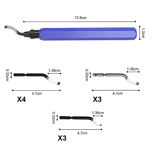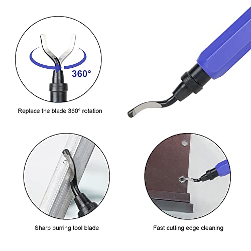 【ENTGRATWERKZEUGSATZ】: Mit Präzisions-Aluminiumgriff und 11 (5+3+3)Entgratklingen, HSS-Klingen 360° drehbare 40-Grad-Schrägklinge ist ideal zum Schneiden von runden Lochkanten, tiefen Löchern, geraden Kanten, gekrümmten Kanten, Rillen.