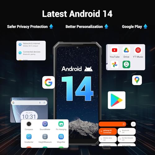 ✨【Letztes System Android 14 】FOSSiBOT F105 unzerbrechliches Telefon ist mit Android 14 ausgestattet, das eine bessere Kontrolle und Einschränkung der Berechtigungen von Anwendungen für mehr Sicherheit ermöglicht. Neben der Systemsicherheit bietet es auch bessere Funktionen für die Benutzeroberfläche, benutzerdefinierte Einstellungen und vieles mehr. Außerdem verfügt es über intelligente Tasten, mit denen sich verschiedene Funktionen oder Anwendungen für einen schnellen Zugriff einfach konfigurieren lassen.