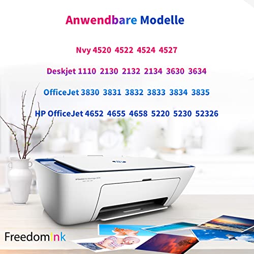 4.Kompatibler Drucker: Kompatible mit HP Deskjet 1110 2130 2132 2134 3630 3634; Envy 4520 4522 4524 4527; OfficeJet 3830 3831 3832 3833 3834 3835 4652 4655 4658 5220 5230 5232 Drucker