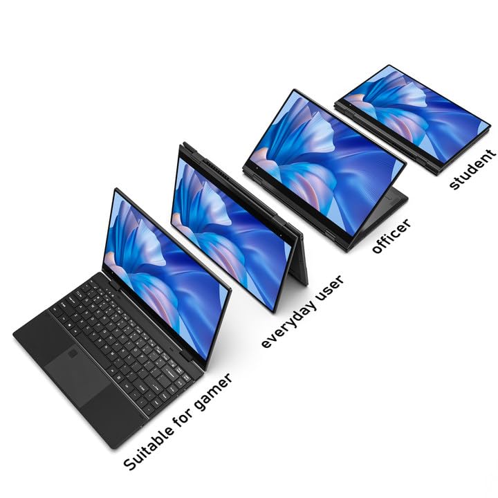 【Dual-Touchscreen mit 360°-Drehung】 360°-Drehung in mehrere Richtungen, die Gesamtheit jählings. Der abgerundete Metallrahmen und das angenehme Empfindung der natürlichen 360°-Drehung sowie das 360°-Dreh- und Faltdesign bieten multifunktionale Funktionen im Laptop-, Stand- und Tablet-Modus.