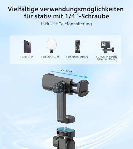 Komplette Stativeinheit Enthalten : Sie erhalten 1pc monopod stativ mit 1/4 Schraubenanschluss, der für Action-Kamera funktioniert; 1pc Telefonhalter, der für die meisten Smartphones adäquat ist, die einen kalten Schuh für Mikrofon und Selfie-Licht haben. 1pc action-adapter für action camera