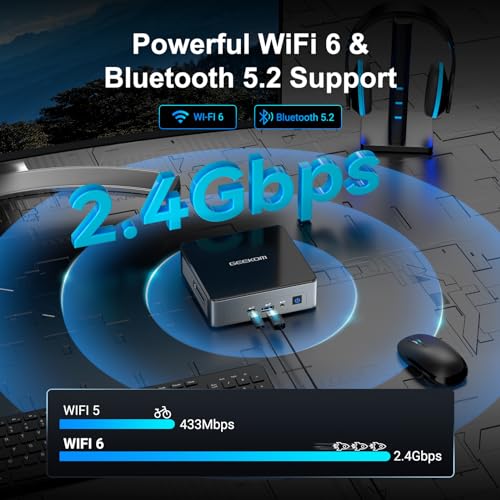 [Wifi6 & BT5.2] – Der kleine PC GEEKOM Mini Air12 ist mit WiFi6 und BT5.2 ausgestattet, die Ihren täglichen Nutzungsanforderungen gerecht werden und eine schnelle Datenübertragung ermöglichen. Und alias die Ports sind besonders weitreichend, was dafür sorgen kann, dass Sie täglich schnell verschiedene Bürosoftware abarbeiten können und Ihr Büro und Ihr tägliches Lernen effizient abhaken können.