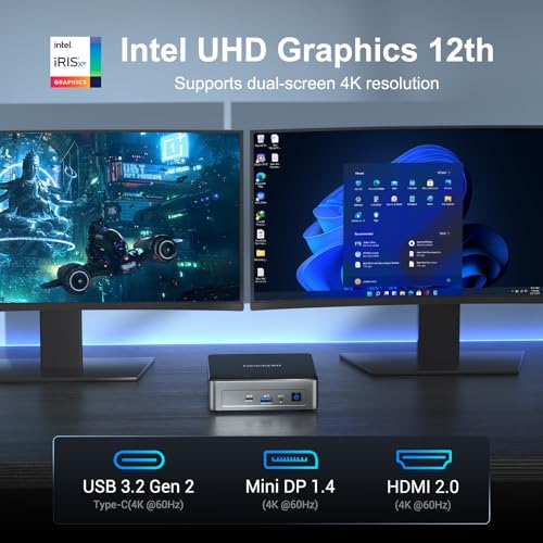 [4K-Dual-Screen-Display] – Der GEEKOM Mini-Desktop-PC Mini Air12 nutzt die 12. Intel UHD-Grafik, um leistungsstarke Leistung für Ihren täglichen Gebrauch zu bieten, HDMI 2.0-Anschluss, Mini DP 1.4, USB 3.2 GEN 2 ermöglicht Ihnen die effiziente Anzeige auf zwei Displays für Multitasking. Der Mini-Desktop-Computer Mini Air12 N100 ist ein kleiner Desktop-Computer mit den Maßen 117 x 112 x 34,2 mm, der kompakt und schon gut ist und eine aufgeräumte Büroumgebung für Sie schafft.