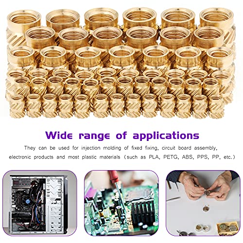 【Hochwertige Materialien】Gerändelte gewindeeinsätze bestehen aus hochwertigem Messing mit hoher Härte und Verschleißfestigkeit, Oxidationsbeständigkeit, starker Korrosionsbeständigkeit und langer Lebensdauer.