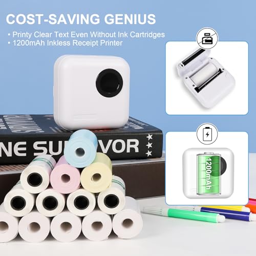 【Ausgezeichnete Leistung Bluetooth-Drucker】: Tragbarer Drucker mit super Druckqualität, 200 DPI hoher Zerrüttung, eingebautem wiederaufladbarem 1200-mAh-Li-Ion-Speicherzelle mit hoher Dichte, längerer Akkulaufzeit, hochwertiger Fotodrucker, um schöne Momente besser festzuhalten. Nachdem Sie diese wunderschöne Landschaft gesehen haben, können Sie die verlorene Schönheit in klaren Bildern wiederentdecken.