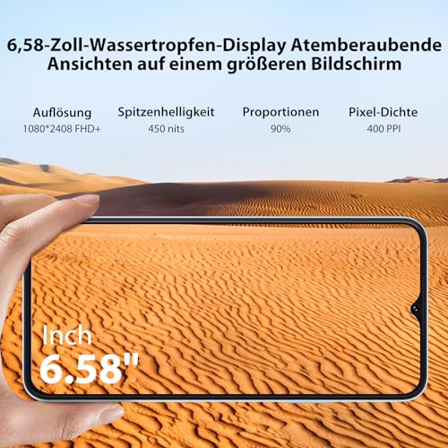 【6,583-Zoll-FHD+-Bildschirm】Der Bildschirm des HAFURY V1 Handy erreicht 6,83 Zoll mit einer Auflösung von 1080 x 2408, was Ihnen einen realistischeren Bildeffekt und ein schockierenderes visuelles Erlebnis ermöglicht.