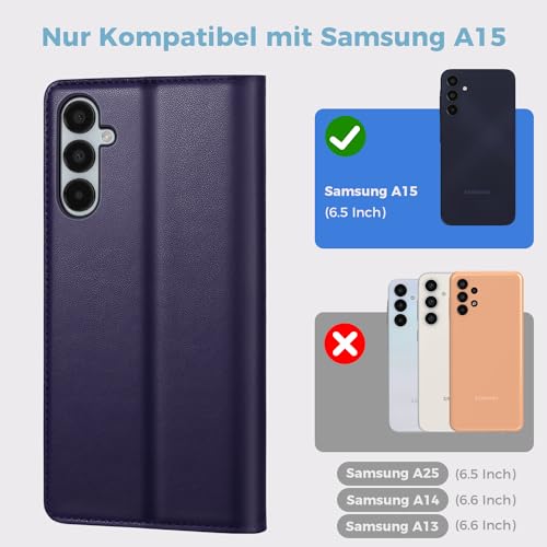 ✅【Hochwertigem PU-Leder】Diese Klappbar für Samsung Galaxy A15 5G Verdeckung besteht allesamt hochwertigem PU-Leder und weicher TPU-Innenschale. PU-Lederhülle ist langlebig und resistent gegen Kratzer und Fingerabdrücke. Das TPU-Etui verfügt über ein Rundum-Design mit erhöhten Kanten und zusätzlicher Polsterung, um Ihr für Samsung A15 Lederhülle vor Stürzen und Dellen zu schützen.