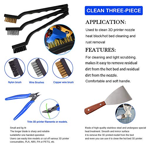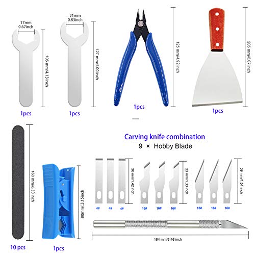 Anwendung: Dieses 3D-Drucker-Werkzeugset enthält verschiedene wichtige Arbeitswerkzeuge, die zum Separieren, Verriegeln und Reinigen des gedruckten Handwerks im Rahmen sind und alle Ihre Anforderungen im Heimwerkerbereich erledigen, insbesondere für Anfänger und Modellbauer.