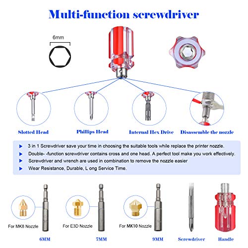 Steckschlüssel: Schraubenschlüssel abschwächen das Ein- und Ausbauen der Düsen. Mit einem speziellen Schraubenschlüssel können Sie den 3D-Drucker adjustieren und die Extruderdüse einfacher umwandeln. 6mm Sockel angebracht für MK8 Düse, 7mm Sockel angebracht für V6 Düse, 9mm Sockel angebracht für MK10 Düse, sie passen gut zur Düse.