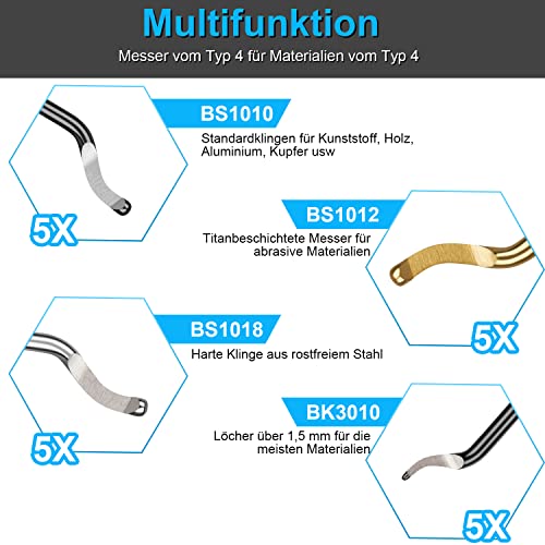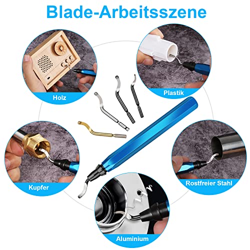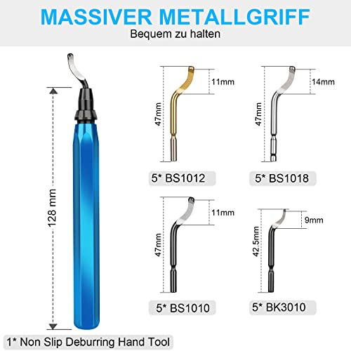 ✔ Reiche Mannigfaltigkeit und starke Vielseitigkeit Messern: Das Set enthält 10 verschiedene multifunktionale Ersatzklingen, die häufig zum Entgraten von Produkten aufgebraucht Kunststoff, Gummi, Holz/Aluminium/Stahl und anderen Werkstücken verwendet werden Griffe, für einfaches Greifen