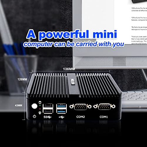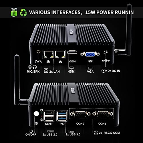 【Rich & Verschiedenes Ports】Dieser lüfterlose Industrie-PC mit 2 x USB 3.0-Port, 2 x USB 2.0-Port, 2 x RS232-COM-Port, 1 x HDMI +1 x VGA Dual-Display-Ausgang, 2 x Gigabit RJ45 Lan-Port Realtek RTL8168/ 8111/8112 Gigabit Ethernet Controller und Dualband 300Mbps Wi-Fi & Bluetooth Combo. Mehrere Ports genug für die meisten Computeranforderungen im Büro und in der Familie.