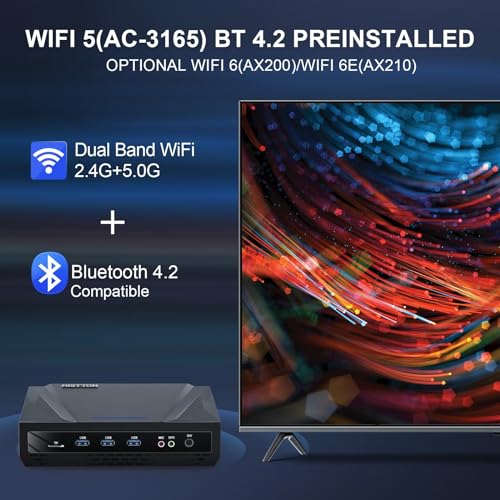 【Hohe Alterungsbeständigkeit & Starke Konnektivität】➥Der Mini Desktop PC ist mit Dual Band Wireless Intel AC-3165 (WIFI5, BT4.2) und Gigabit Ethernet-Netzwerk ausgestattet, um eine hervorragende Internetleistung zu feilbieten und eine reibungslose Medien- und Videowiedergabe zu gewährleisten. Seine robuste Konnektivität garantiert ein stabiles und unterbrechungsfreies WLAN-Fingerzeig und bietet Ihnen eine zuverlässige und nahtlose Angeschlossen-Erfahrung.