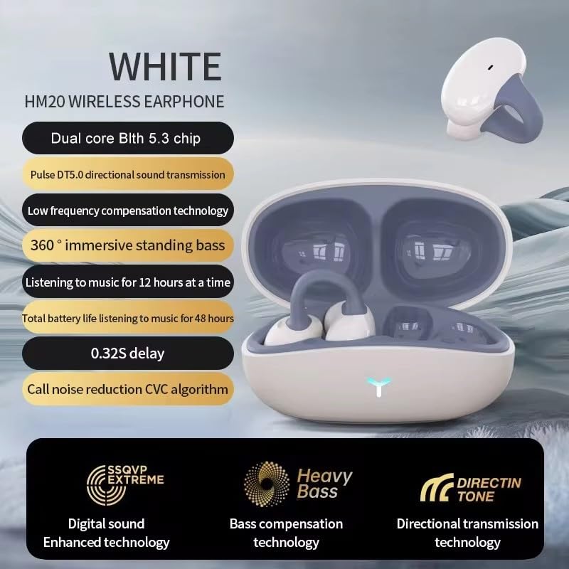 【Wirklich kabellose Ohrhörer】Erleben Sie die Freiheit eines kabellosen Lebensstils mit dem HM20 neuen Clip-Headset. Keine Kabel, keine Grenzen – genießen Sie Musik, verwalten Sie Anrufe und abrichten Sie ohne Einschränkungen.
