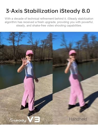 3-Achsen-Stabilisierung iSteady 8.0 : hohem iSteady V3 Handy-Gimbal-Stabilisator, mit einem Jahrzehnt technischer Raffinesse, der iSteady-Stabilisierungsalgorithmus hat ein neues Upgrade erhalten, das Ihnen leistungsstarke, stabile und wackelfreie Videoaufnahmefähigkeiten bietet. Good ideal of vlogging, titok, youtube and live stream recording