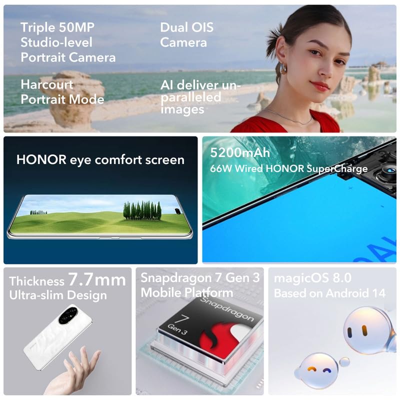 HONOR 200 5G Smartphone – Read Only Memory 512GB,aufladbare Batterie 5200mAh,Snapdragon 7s Uff 3,Triple Camcorder 50 MP,Anzeige 6.7“,Dual SIM,NFC,MagicOS 8.0/Androide 14 – Weiß