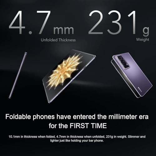 Faltbare Telefone sind zum ersten Mal in das Zeitalter der Millimeter eingetreten: 9,9 mm wohlbeleibt, gefaltet 4,7 mm und 231 g Gewicht. Dünner und leichter, um Ihr Bar-Telefon zu halten