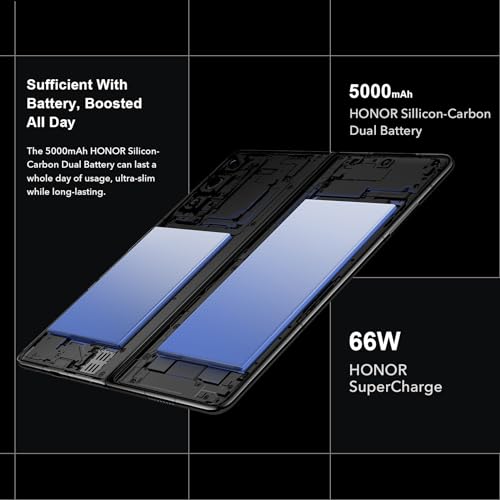 Genug mit wiederaufladbare Batterie, den ganzen Tag angetrieben: Der Dual-5000-mAh-wiederaufladbare Batterie alle Silicium-Karbon von HONOR kann einen ganzen Tag verwendet werden, ultradünn und langlebig. Die Snapdragon 8 Gen 2 Mobile Plattform arbeitet mit den drei HONOR Boost-Motoren zusammen, um einen reibungsloseren Betrieb zu gewährleisten.