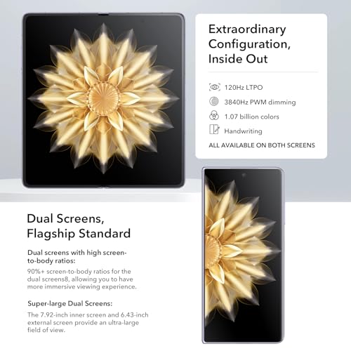 Dual-Displays mit hohem Bildschirm-zu-Körper-Liebelei: 90 % + Bildschirm-zu-Körper-Verhältnisse für zwei Bildschirme, was Ihnen ein immersives Seherlebnis ermöglicht. Supergroße Dual-Displays: Das 7,92-Aufschlag-Innendisplay und das 6,43-Aufschlag-Außendisplay bieten ein ultra-großes Sichtfeld.