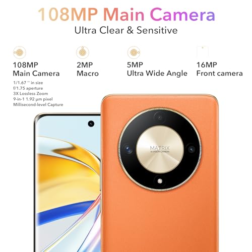 【100MP+5MP+2MP Triple Rear Camera】HONOR Magic6 Lite Smartphone ist mit einer 108MP Hauptkamera ausgestattet, die Bilder nah heranholen und kleinlich Nahaufnahmen projizieren kann.