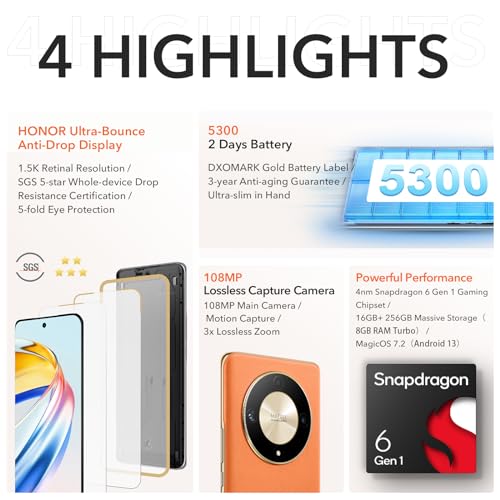 【4nm Qualcomm Snapdragon 6 Gen 1, 8GB 256GB Großer Speicher】HONOR Magic6 Lite Mobiltelefon kommt mit der Snapdragon 6 Gen 1 mobilen Plattform und Flaggschiff 4nm Prozesstechnologie, der leistungsstarke Kernstück kann Ihnen helfen, Ihr volles Potenzial zu entfesseln.
