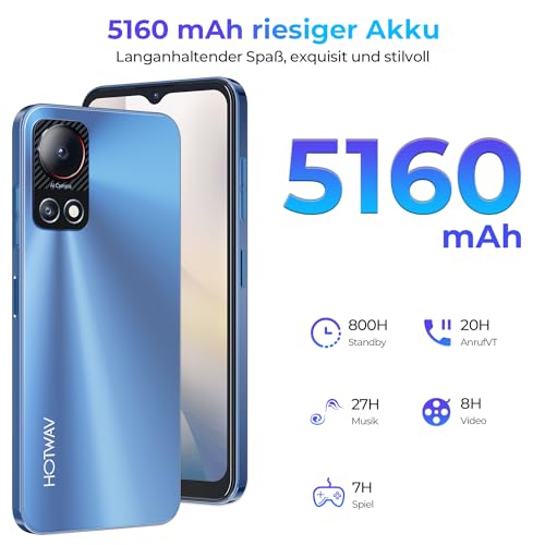🔋【5160mAh Akku & OTG Reverse Charging】HOTWAV NOTE 13 Smartphone ohne vertrag der riesige 5160mAh Akku mit neu aktualisierter Energiespartechnologie bietet bis zu 800 Stunden Standby-Zeit und 20 Stunden Gesprächszeit. NOTE 13 handy mit Unterstützung für 18W Schnellladung und OTG Reverse Charging können Sie Ihr Telefon schnell und einfach aufladen und gleichzeitig andere Geräte wie Ihr Telefon, Uhr oder Kopfhörer aufladen. Machen Sie sich zu keiner Zeit von neuem Sorgen, dass die Batterie überkommen wird.
