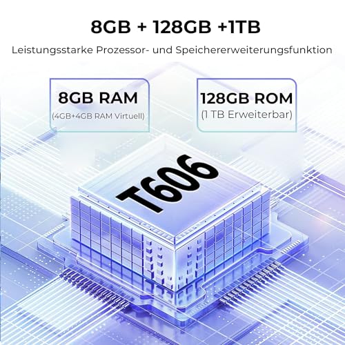 🌈【8GB RAM + 128GB ROM/1TB Erweiterbar & Octa-Core-Prozessor】HOTWAV Note 13 Smartphone ohne vertrag mit großzügigen 8GB RAM (4GB RAM + 4GB erweiterbarer RAM) und 128GB ROM haben Sie ausreichend Speicherplatz, der mit einer 1TB SD-Karte erweitert werden kann, um Ihren Arbeits- und Unterhaltungs- Bedürfnissen gerecht zu werden. Note 13 Handy ohne vertrag zusammen mit dem 1.6GHz Unisoc T606 Octa-Core-Prozessor bringt Ihnen ein unvergleichlich flüssiges Spielerlebnis.