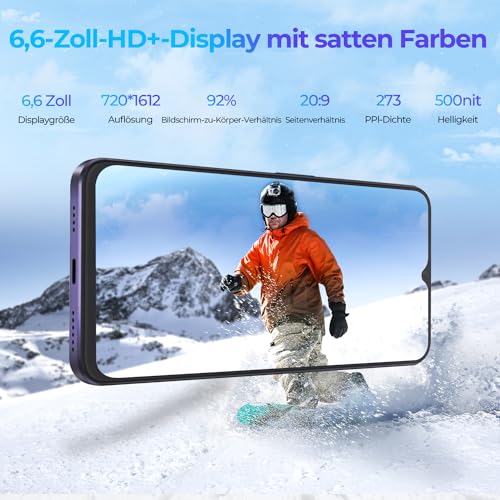 💡【90Hz 6,6 zoll HD+ Display】Das HOTWAV NOTE 13 handy ohne vertrag beeindruckt mit einem 6,6 Verzinsung HD+ Touchscreen. Die Gewinnung des erreicht 720×1612, mit einem Seitenverhältnis von 20:9. HOTWAV NOTE 13 smartphone ohne vertrag dies gewährleistet ein flüssiges Display und sättigt die Farben für ein herausragendes visuelles Erlebnis. NOTE 13 Smartphone mit Dynamische 90Hz Bildwiederholfrequenz, bietet eine glattere und klarere Erfahrung in Spiel und Web-Browsing.