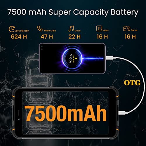 🔋【7500mAh großer Akku + OTG-rechtseindeutige Relation】HOTWAV T5 Pro robustes Telefon verfügt über einen 7500mAh großen Akku, super lange Standby-Zeit von 624 Stunden, Telefonanruf 47 Stunden, MP3-Musik 22 Stunden, Online-Video 16 Stunden, Gaming-Zeit 16H, erfüllt Ihre tägliche Abhandlung und Unterhaltung Bedürfnisse. OTG-rechtseindeutige Relation kann Reverse-Charging verschließen, können Sie Ihre anderen elektronischen Geräte aufladen und verabschieden Sie sich von Batterie Angst.