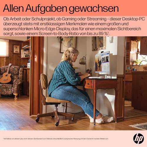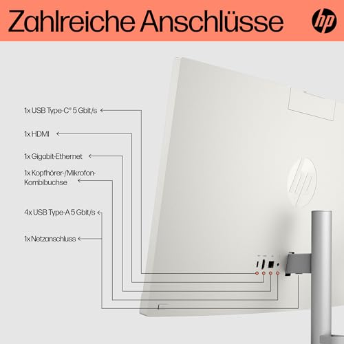 HP All-in-One Desktop-PC,23,8″ FHD Display, AMD Ryzen 5 7520U, 8 GB DDR5 RAM, 512 GB SSD, AMD Radeon-Grafikeinheit, Windows 11 Home, QWERTZ, Weiß, [Exklusiv bei Amazon]