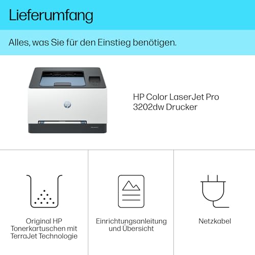 HP Color LaserJet Pro 3202dw Farblaserdrucker, Automatischer beidseitiger Druck, Hohe Druckgeschwindigkeit, Wi-Fi, High-Speed USB, Ethernet, HP Wolf Pro Security, Konzipiert für Arbeitsgruppen