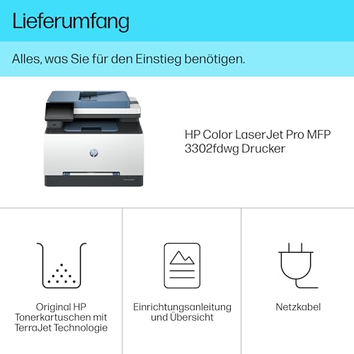 HP Color LaserJet Pro MFP 3302fdwg Multifunktions-Farblaserdrucker, Fax, Automatischer beidseitiger Druck, Touchscreen, Wi-Fi, Ethernet, USB, HP Wolf Pro Security