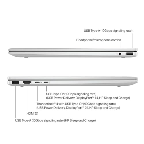 Mehrere Anschlüsse in den Startlöchern – Verbinden Sie Ihren Laptop mit anderen Geräten. 2 x USB Typ-A, 2 x Thunderbolt 4, 1 x HDMI, 1 x Kopfhörer-/Mikrofon-Kombination