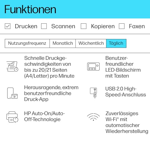 Intuitiv und einfach zu bedienen, mobiles Drucken und Scannen mit der HP App, 1 Hi-Speed-USB, Wireless