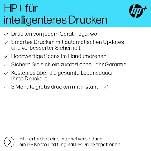 Mit HP+ erhalten Sie 3 Probemonate Instant Ink und weitere Vorteile. In den 3 Probemonaten HP Instant Ink sind bis zu 700 Seiten/Monat inklusive – egal, welcher Tarif. Monatliche Testen nach Transaktion der Probemonate ab 1,49€/Monat. Monatlich kündbar. Start von HP+ indes der Druckerinstallation erforderlich.