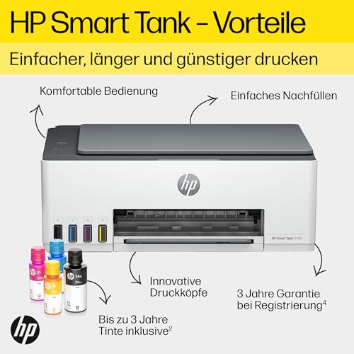 SPARSAM: Extrem kostengünstiges Drucken pro Seite in hoher Qualität mit innovativer HP-Tanktechnologie der nächsten Altersgruppe. Bis zu 3 Jahre Tinte im Lieferumfang enthalten (Tinte statt dessen bis zu 6.000 S/W und 6.000 Farbseiten)