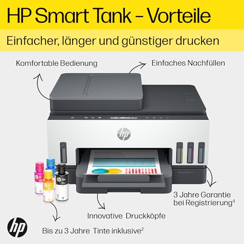 HP Smart Tank 7305 3-in-1 Multifunktionsdrucker (WLAN; Duplex; ADF) – 3 Jahre Tinte inklusive, 3 Jahre Garantie, großer Tintentank, hohe Reichweite, Drucken in hoher Qualität