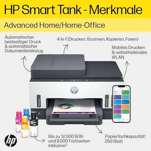 HP Smart Tank 7605 4-in-1 Multifunktionsdrucker (WLAN; Duplex; ADF) – 3 Jahre Tinte inklusive, 3 Jahre Garantie, großer Tintentank, hohe Reichweite, Drucken in hoher Qualität
