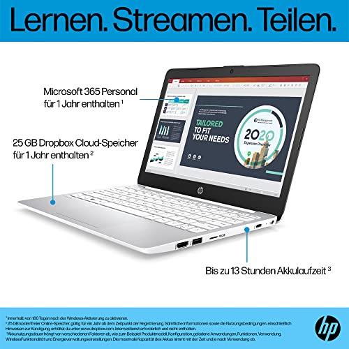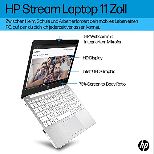 HP Stream Laptop | 11,6″ HD Display | Intel Celeron N4120 | 4GB DDR4 RAM | 64GB eMMC | Intel Grafik | Windows 11 S-Mode | QWERTZ Tastatur | Weiß | inkl. Microsoft Office 365 Single