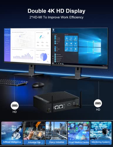 【Unterstützt 4K Doppelmonitore】 Mini PC mit der Intel Graphics 620, Sie können 4K@30Hz Videos für das tägliche Surfen im Internet verarbeiten. Lüfterloser PC I5 Unterstützt die doppelte Anzeige durch 2 * HD MI, wodurch die Arbeitseffizienz erheblich verbessert und unnötige Arbeitsvorgänge eingespart werden. Ideal für visuelles Home Entertainment, Industriearbeiten, Konferenzräume usw.