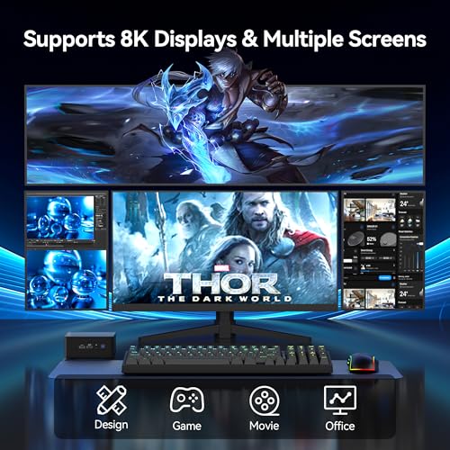 MULTI-BILDSCHIRM-ANZEIGE: Intel nuc 12 unterstützt 8K Bildschirme und 4K 4 Bildschirme und erfüllt damit die Anforderungen für den Einsatz auf mehreren Bildschirmen. Die mitgelieferte VESA-Halterung kann den vom Intel nuc 12 eingenommenen Platz besser reduzieren, der Raum sieht einfacher aus.
