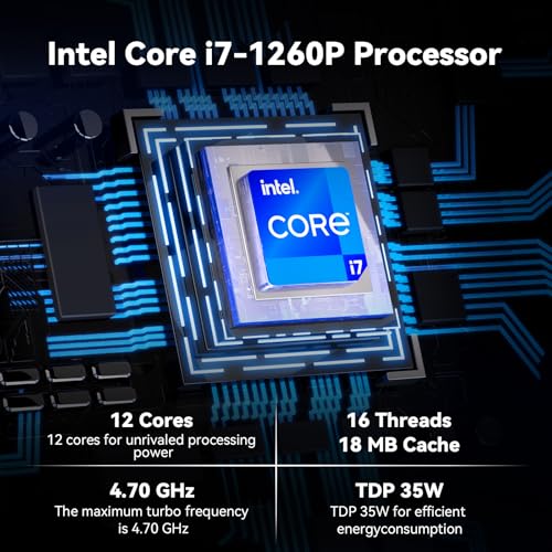 VERBESSERTE LEISTUNG MIT CORE I7 1260P-PROZESSOR: Der Mini-PC mit kleinem Formfaktor ist mit dem neuesten Intel Core i7-1260P-Prozessor der 12. Jahrgang mit 12 Kernen und 16 Threads und einer maximalen Turbofrequenz von bis zu 4,7 GHz im Burst-Modus ausgestattet; die Hochleistungs-CPU kann Ihre verschiedenen täglichen Anforderungen fertig stellen, denn z. B. Hausaufgaben, Internetsurfen, Heimunterricht, Musikbearbeitung und Programmbearbeitung.