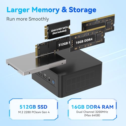【Klein von außen, leistungsstark im Inneren】–Intel NUC 13 Pro Mini-PC mit Hochgeschwindigkeits-16 GB DDR4, integrierte 512 GB M.2 SSD. Auf diese Weise kann es Aufgaben wie speicherintensives Multitab-Browsing und das schnelle und einfache Öffnen einer riesigen Grafikdatei verstreben. Wenn Sie noch mehr Speicherplatz benötigen, können Sie auch eine 2,5-Abgabe-SSD (nicht im Lieferumfang enthalten) hinzufügen, um den Speicher für eine wunderbare, sichere Datenbank zu erweitern.