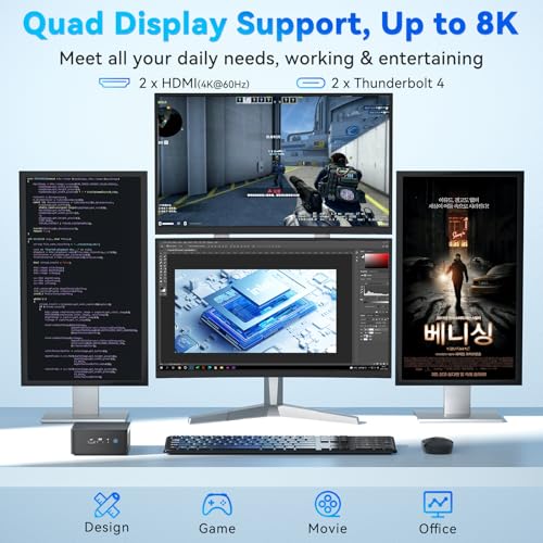 【Klareres Aufnahme】–Der Minicomputer Intel NUC 13 Pro ist mit Intel Iris Xe Graphics ausgestattet. Bilder werden mit einem neuen Schattierung an Realismus lebendig und die Farben sind lebendiger. Sie können 8K-Websurfen, Videowiedergabe, Fernsehen, Heimkino und Unterhaltung mit Ihrer Familie genießen. Zwei HDMI-Anschlüsse und zwei Thunderbolt 4-Anschlüsse ermöglichen den einfachen Anschluss von 4 Monitoren, die Effizienz bei Werk, Unterhaltung und Kreation verdoppelt sich.
