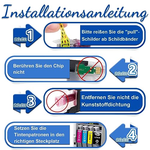 Packungsinhalt:4*LC424,1 x LC424 Schwarz, 1 x LC-424 Cyan, 1 x LC 424 Magenta, 1 x LC 424 Gelb